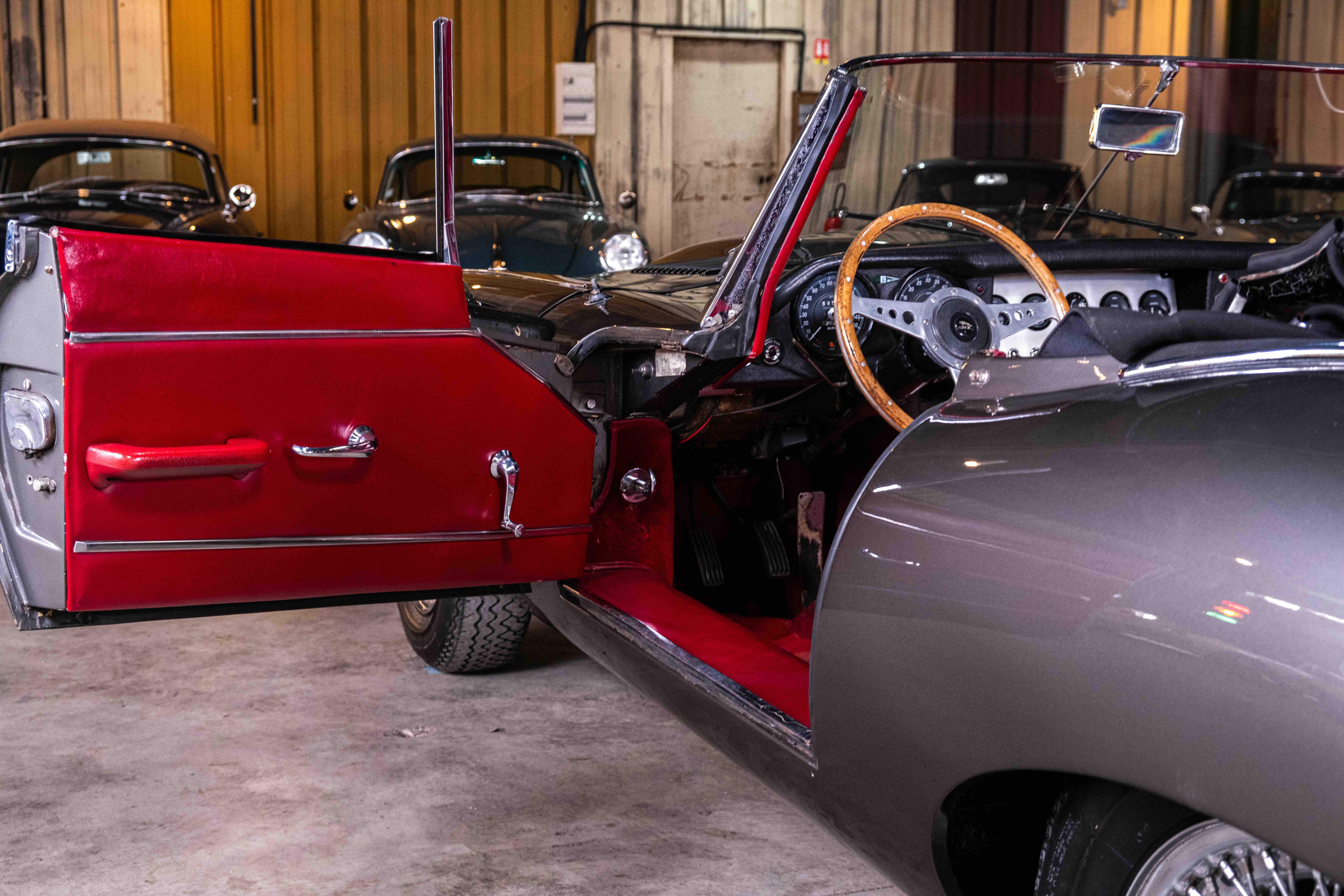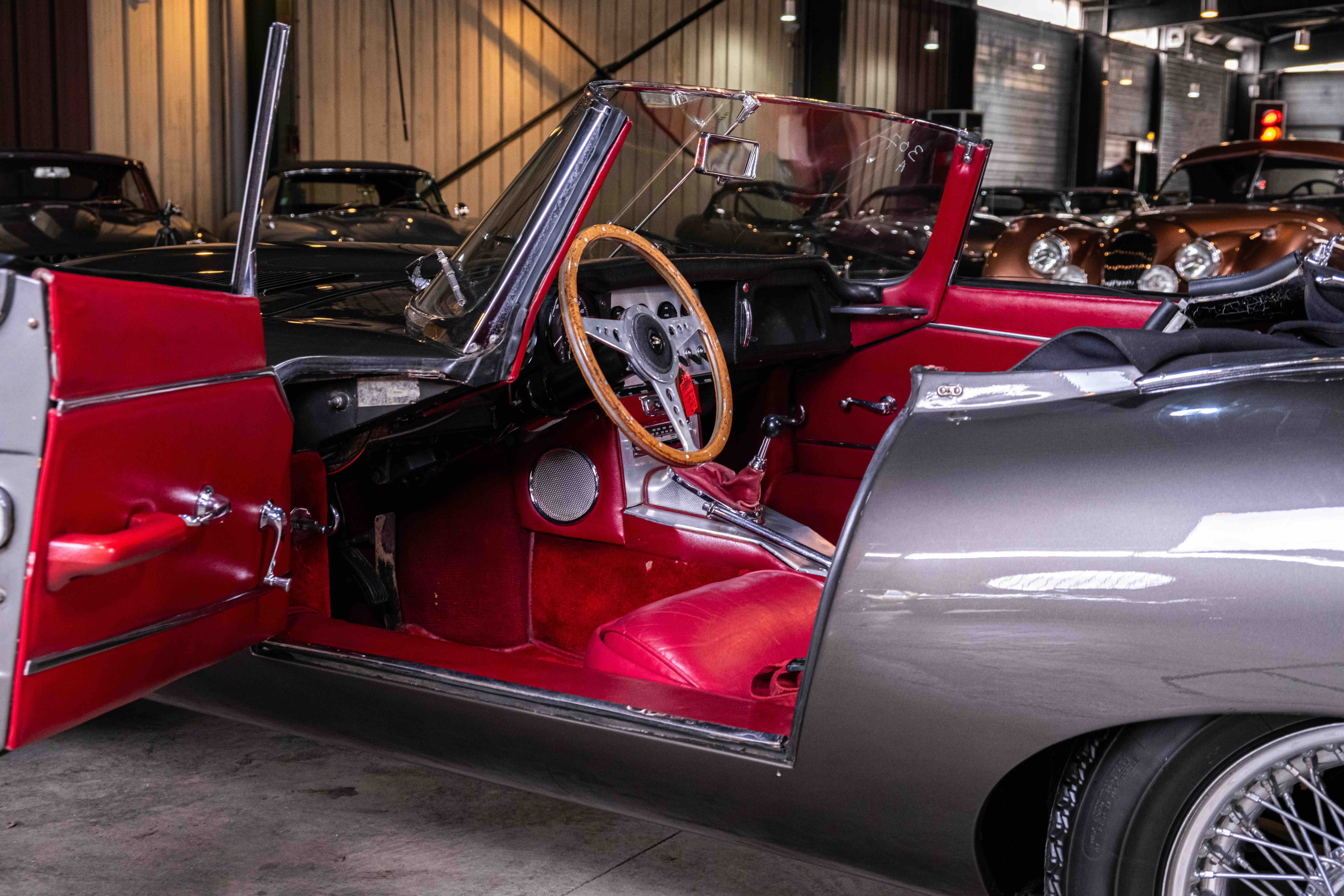 Ce rare modèle Jaguar Type E série I 3,8 L plancher plat est à vendre en tant que projet de restauration à la carte dans nos ateliers. Elle sera totalement démontée, tous les éléments de carrosserie seront mis à nu, passée au rôtissoire. Toute la partie mécanique (moteur, boite, pont, freinage, etc…) sera intégralement restaurée conforme à l’origine avec toutes les améliorations nécessaires à un usage serein. La voiture pourra être peinte dans sa couleur d’origine sortie d’usine ou de la couleur qui plaira à son futur propriétaire en finition polylustré. La sellerie complète sera refaite, sièges en cuir pleine fleur, moquettes, capote et couvre capote en toile alpaga, intérieur de coffre, etc… dans sa couleur d’origine ou dans la couleur désirée.
