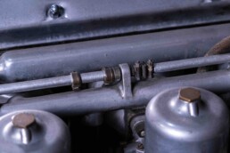 Vous pouvez ainsi choisir les options que vous souhaitez (freinage, direction, boite de vitesses, etc…), vous pourrez suivre la restauration via un suivi photo que nous vous ferons parvenir. Le Jaguar Heritage fourni atteste que l’auto a été livrée neuve le 21 Septembre 1961 à Jaguar Cars New York. D’origine Old English White intérieur rouge, cette Jaguar Type E a été repeinte après démontage intégral il y a de nombreuses années, nous n’avons pas d’avantage d’éléments sur son passé.