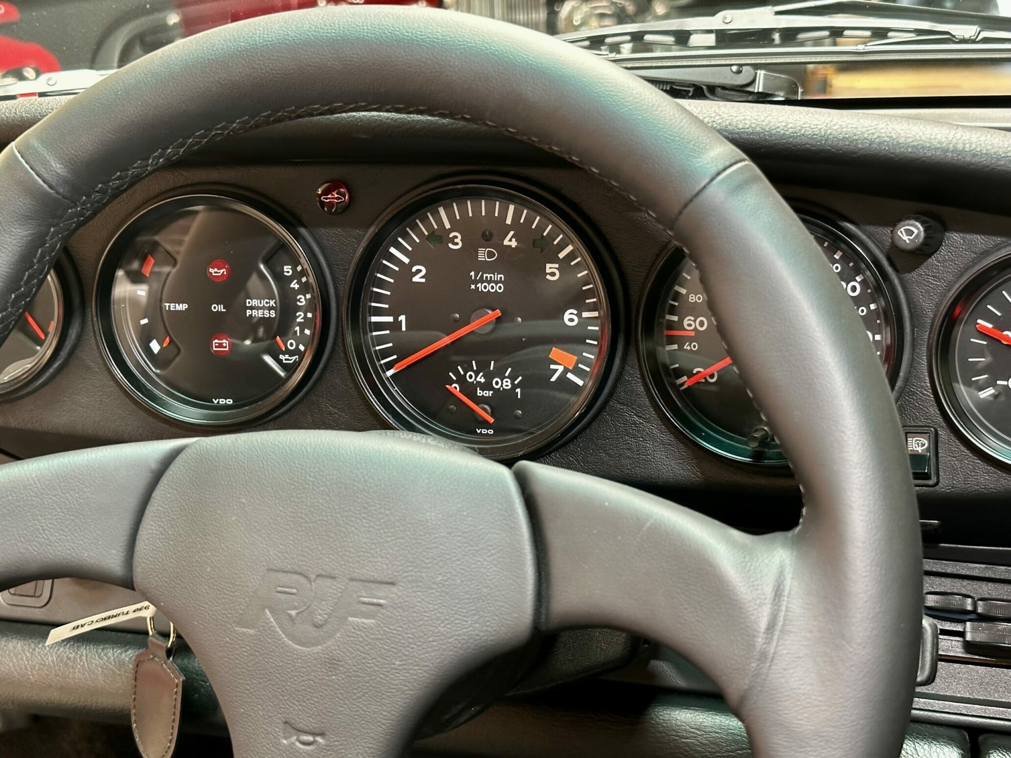 Dotée d’un nouveau volant trois branches recouvert de cuir, de moquettes épaisses, d’une sellerie spécifique mêlant cuir et tissu, de vitres électriques, d’un auto radio à cassettes avec ses quatre haut-parleurs, d’un essuie-glace arrière et de phares anti brouillard à l’avant, la nouvelle 911 Turbo a tout d’un haut de gamme.