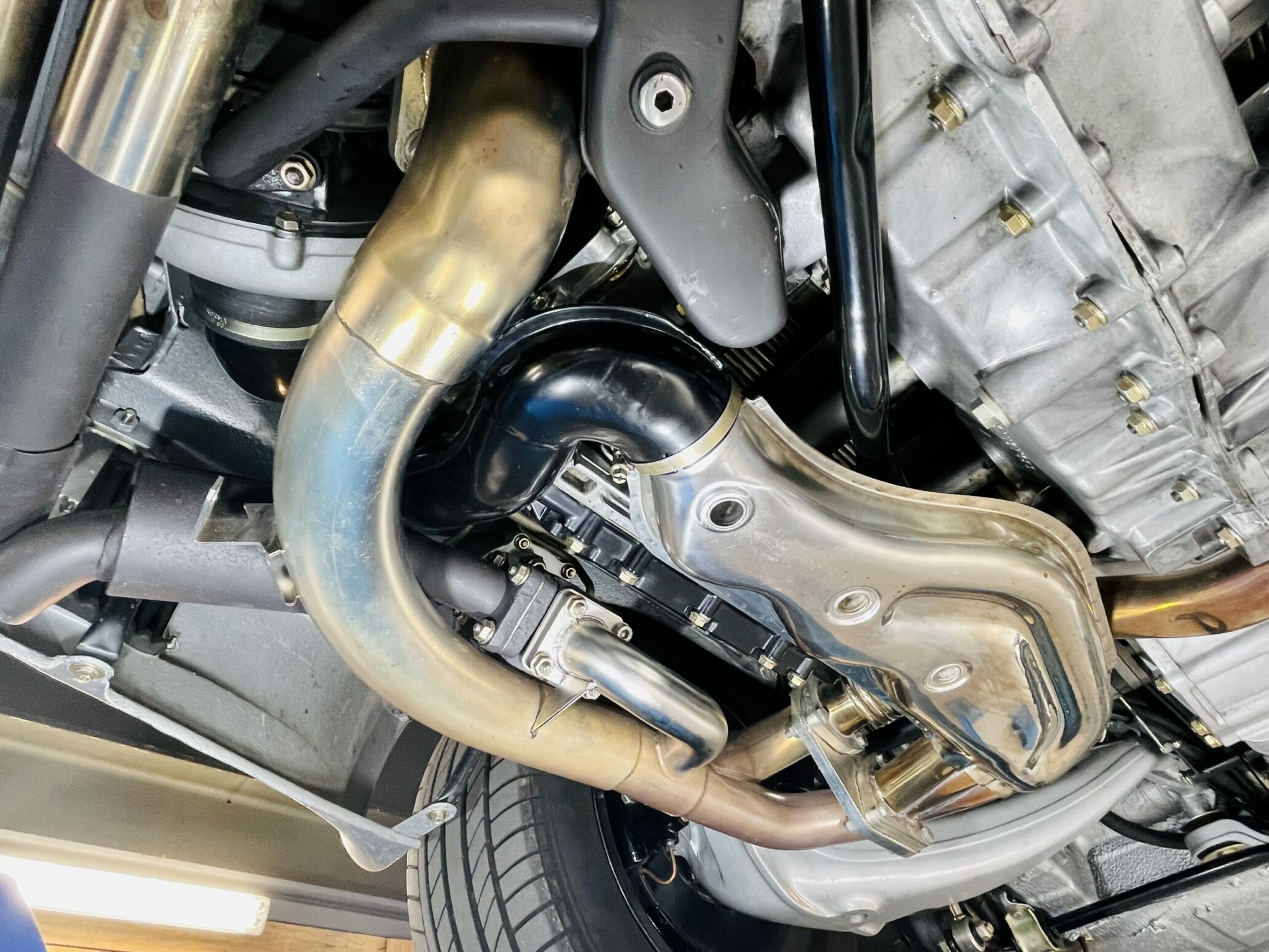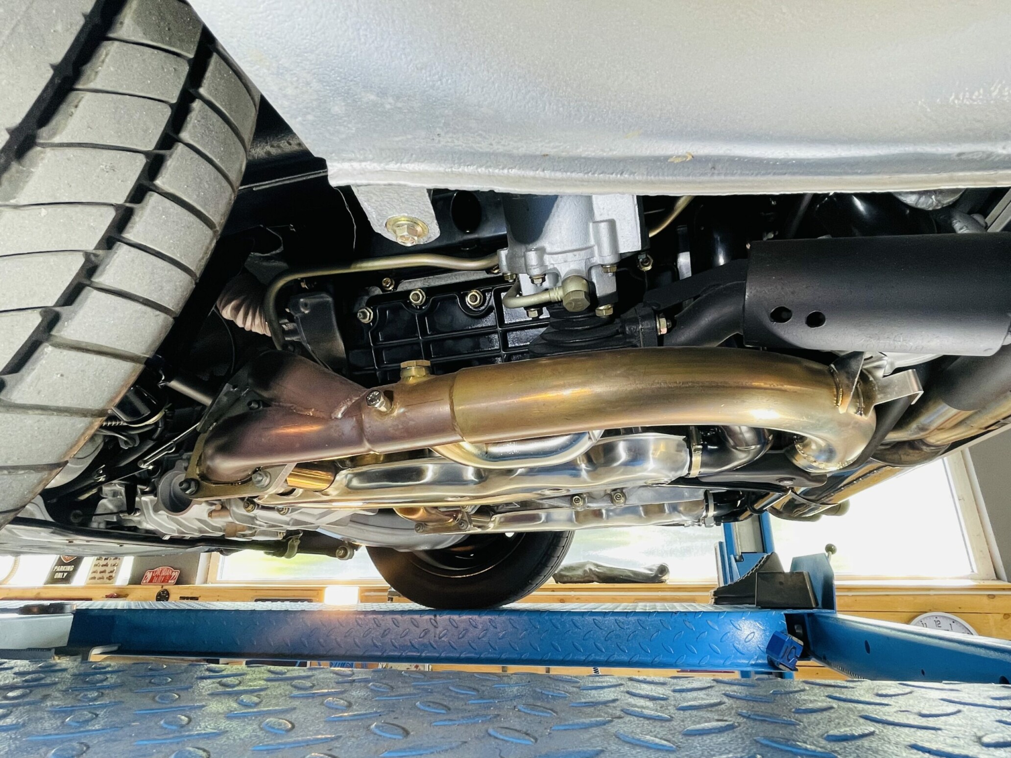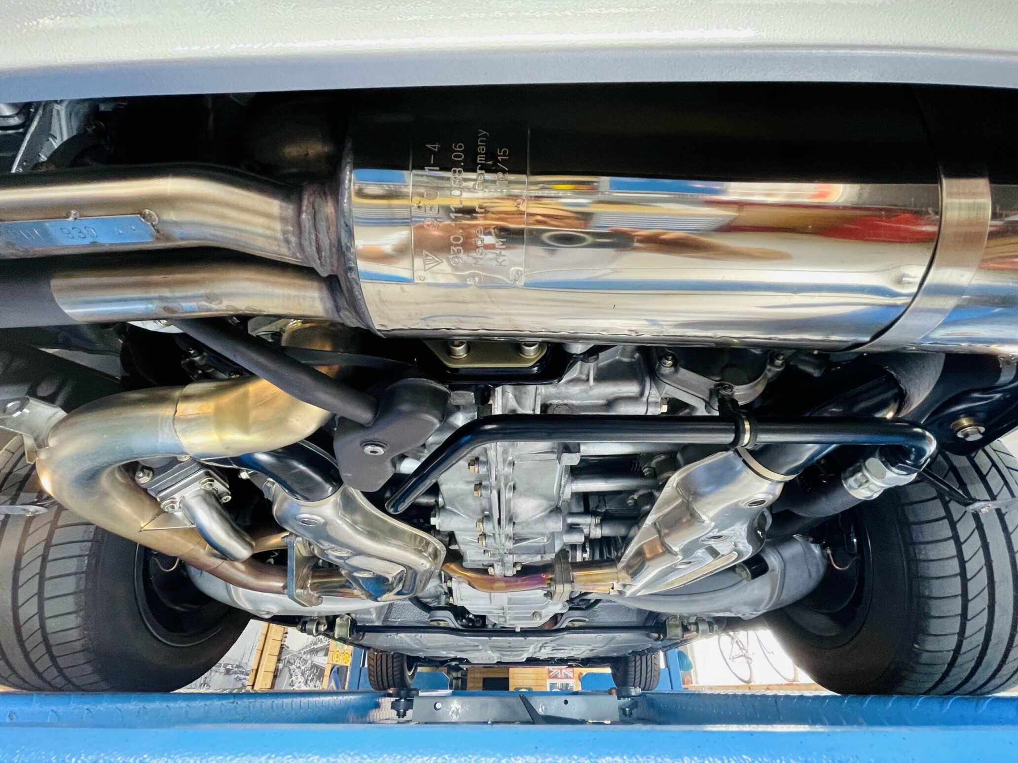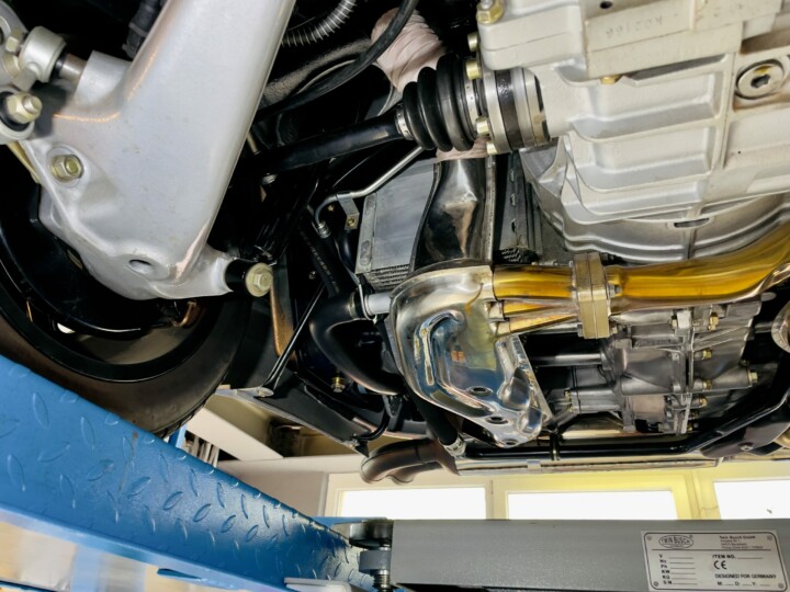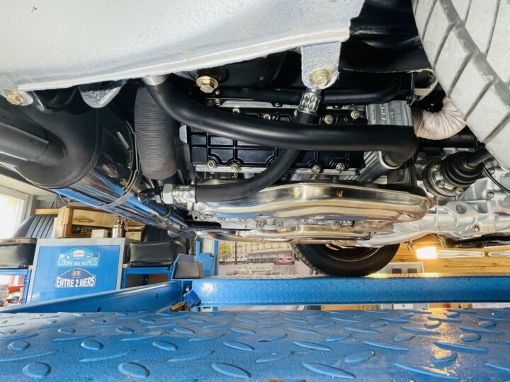 A l’extérieur, la ligne fait sensation. Les ailes avant sont élargies de 60 mm à l’avant et de 120 mm à l’arrière pour abriter des jantes Fuchs de respectivement 7’’ et 8’’ de large pour un diamètre de 15’’. Il y a surtout cet énorme aileron arrière en queue de baleine, qui interpelle et fait immédiatement rêver le public. Les performances sont de tout premier ordre avec 250 km/h en pointe et un 1000 m DA abattu en 24 secondes ! Pour l’époque, c’est remarquable.