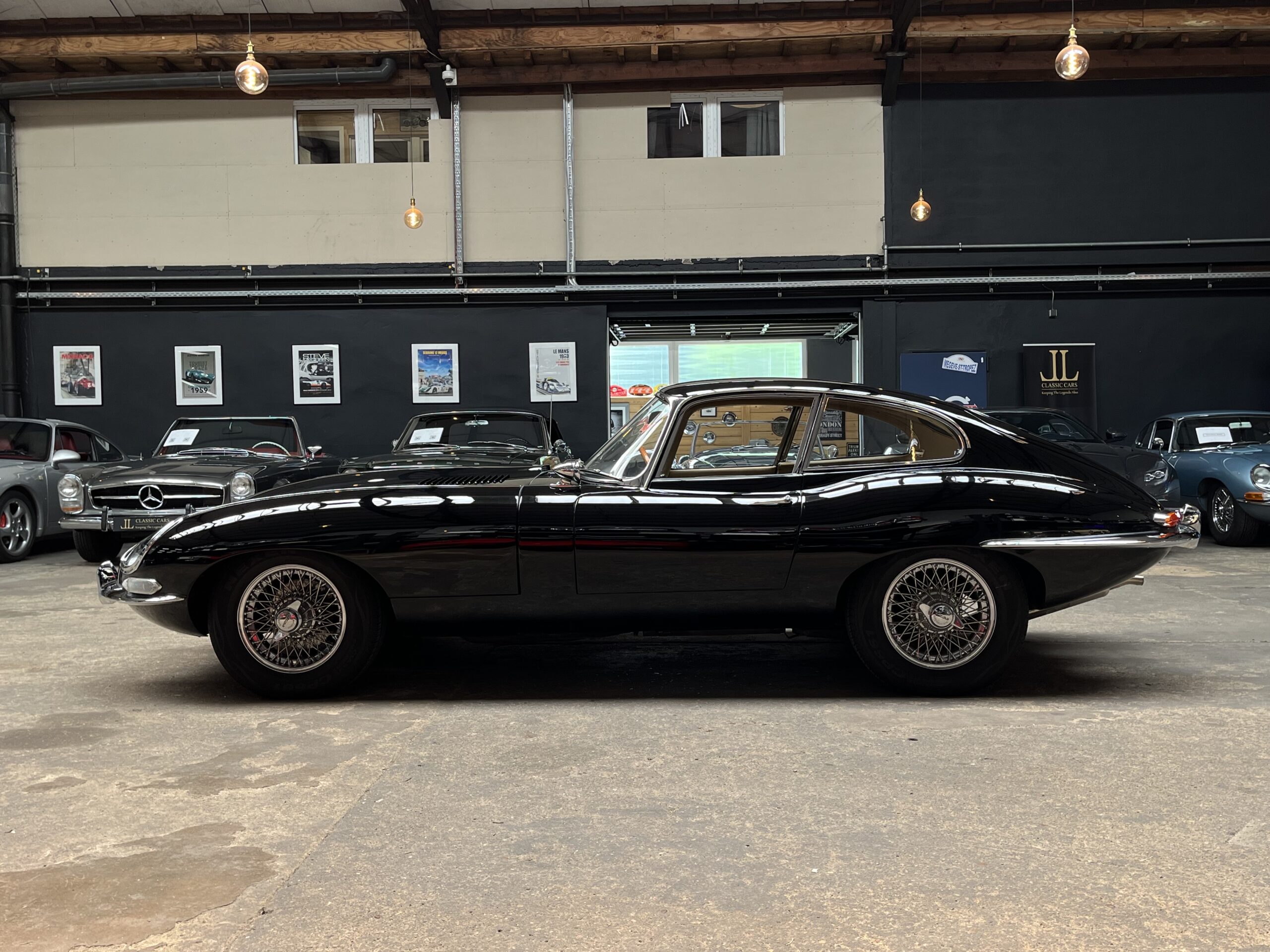 The Jaguar Type E 3.8L, a legendary car with the privilege of being called “the most beautiful car ever built” by Enzo Ferrari himself, perfectly combines elegance, power and history. Launched in 1961, the Jaguar E-Type revolutionized the automotive world with its aerodynamic design and incredible performance. Designed by former aeronautical engineer Malcolm Sayer, it was the result of a perfect fusion of art and engineering. The 1964 version, equipped with the 3.8L engine, represents the pinnacle of this iconic model. This 1964 Jaguar Type E 3.8L immediately captivates with its flowing, sculpted lines, long, elegant hood and striking fastback rear end, which never fail to turn heads. Inside, refined leather, chrome dials and an aluminum dashboard add an irresistible touch of luxury to this true racing beast. Under the hood, the 3.8-liter, in-line 6-cylinder engine develops 265 hp, propelling the car from 0 to 100 km/h in just 6.4 seconds. The 4-speed manual transmission offers a pure, engaging driving experience, while its top speed of 240 km/h made it one of the fastest cars of its era. The Jaguar E-Type is not only a collector’s car, it’s also a legend on the racetrackIt dominated racing in its class, and was the choice of many famous celebrities and drivers. The car was also one of the first to feature four-wheel disc brakes, a major innovation at the time that contributed to its exceptional performance.