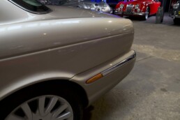 Our 2003 example boasts a stunning champagne color, an elegant and timeless shade that highlights the classic and refined lines of the Jaguar XJ8. Its beige leather interior, carefully maintained, creates a warm and luxurious ambiance, further enhanced by wood trim in excellent condition, a testament to the British brand’s craftsmanship.